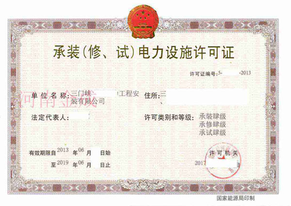 • 承裝(修、試)電力設施許可證
